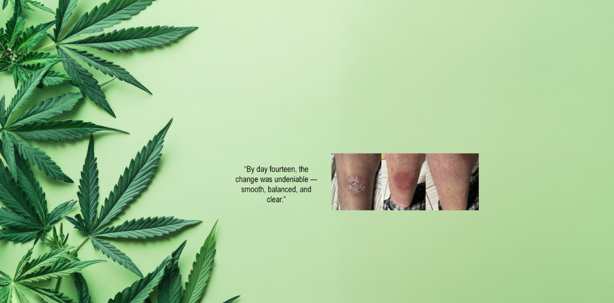 A breakthrough non-THC botanical treatment that soothes irritation, restores balance, and renews your skin’s natural vitality — from eczema to rosacea to psoriasis and more.